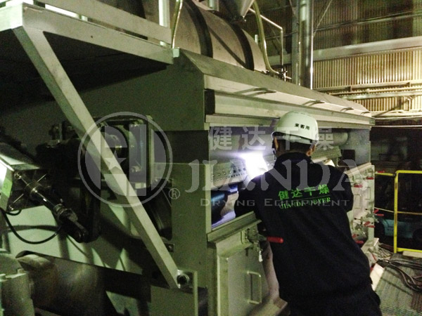 3、熱效率高:是國內(nèi)首臺熱效率達(dá)到90%以上的雙滾筒刮板干燥機;